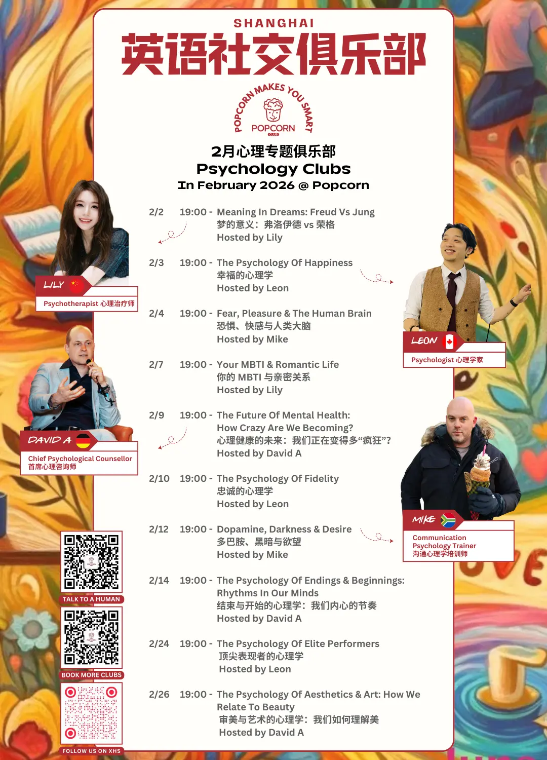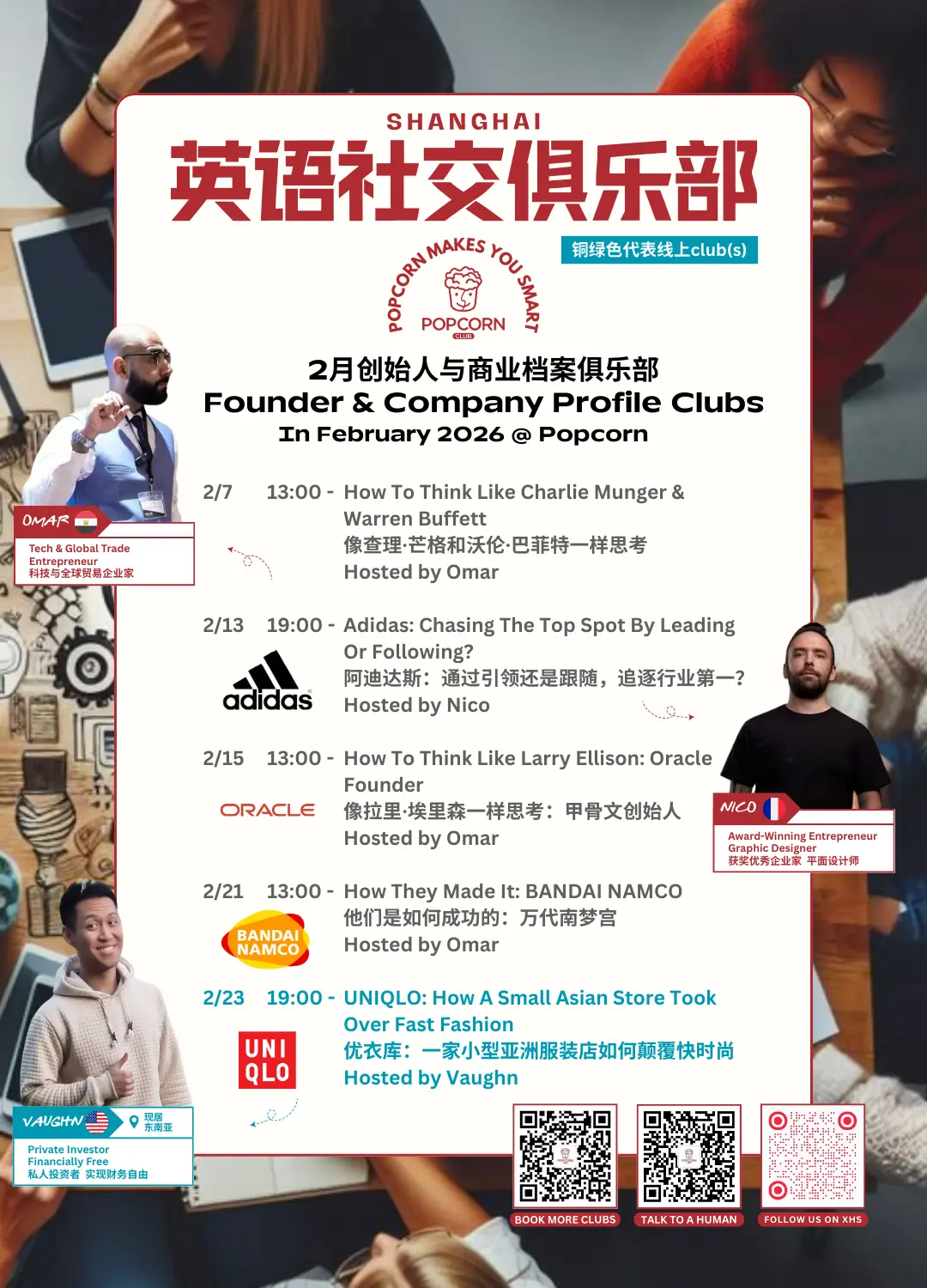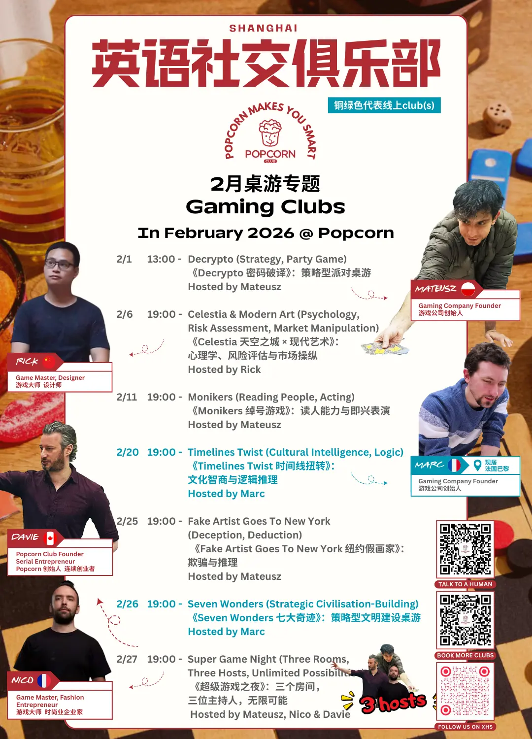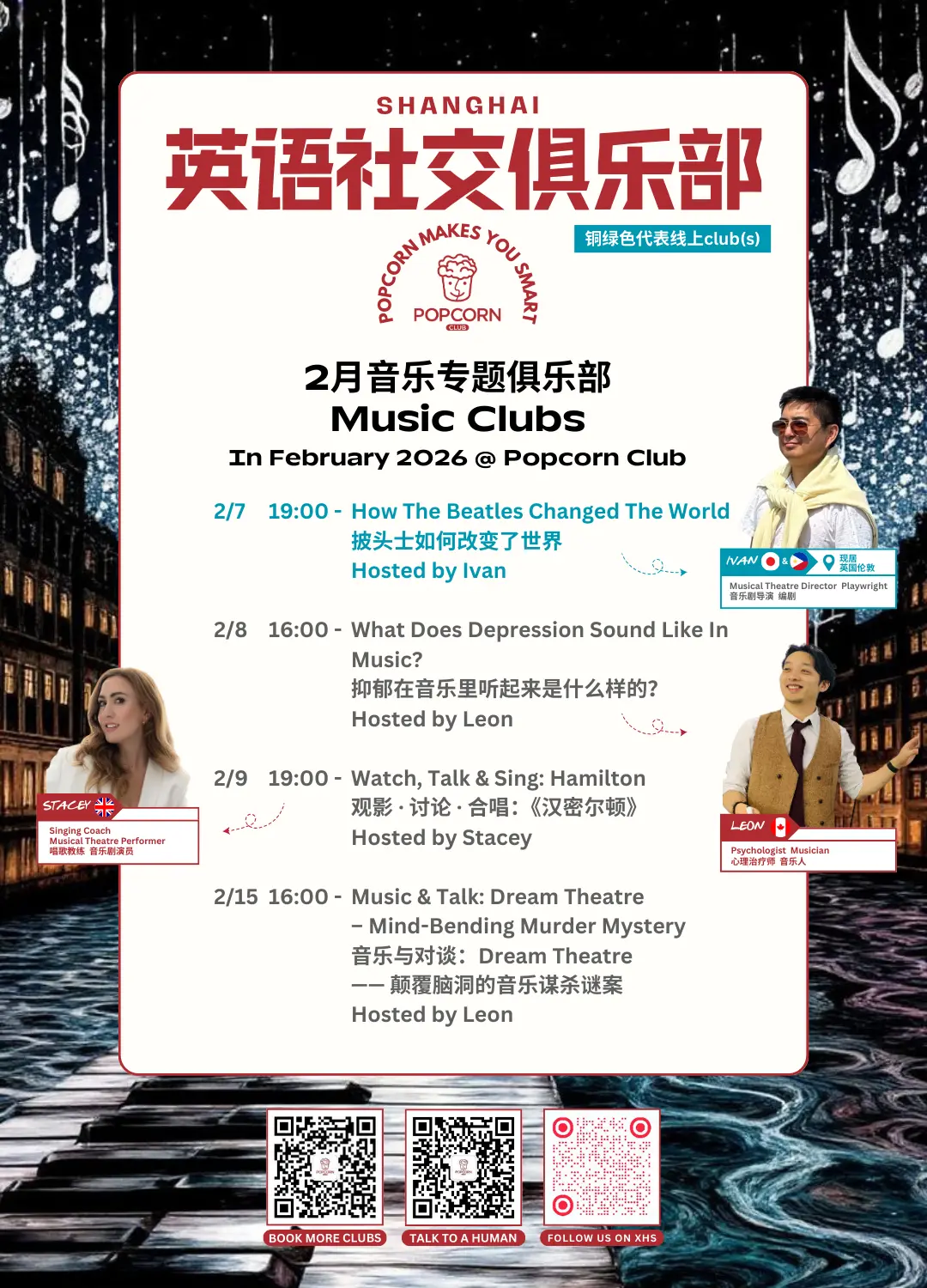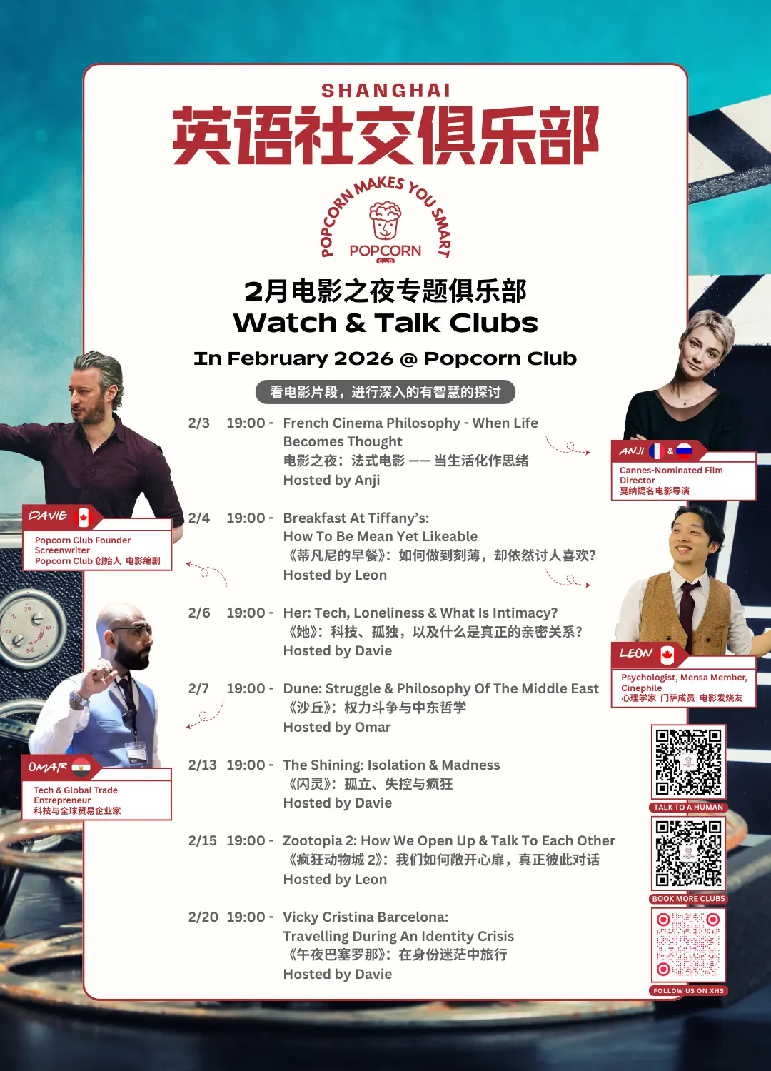 当然,2月的俱乐部远不止这些,我们只是提前给大家一点小小的剧透。还会有游戏、电影之夜、科技专题、音乐clubs、哲学、金融、商业,以及超有意思的specialty clubs,还有以及更多精彩等你来发现!