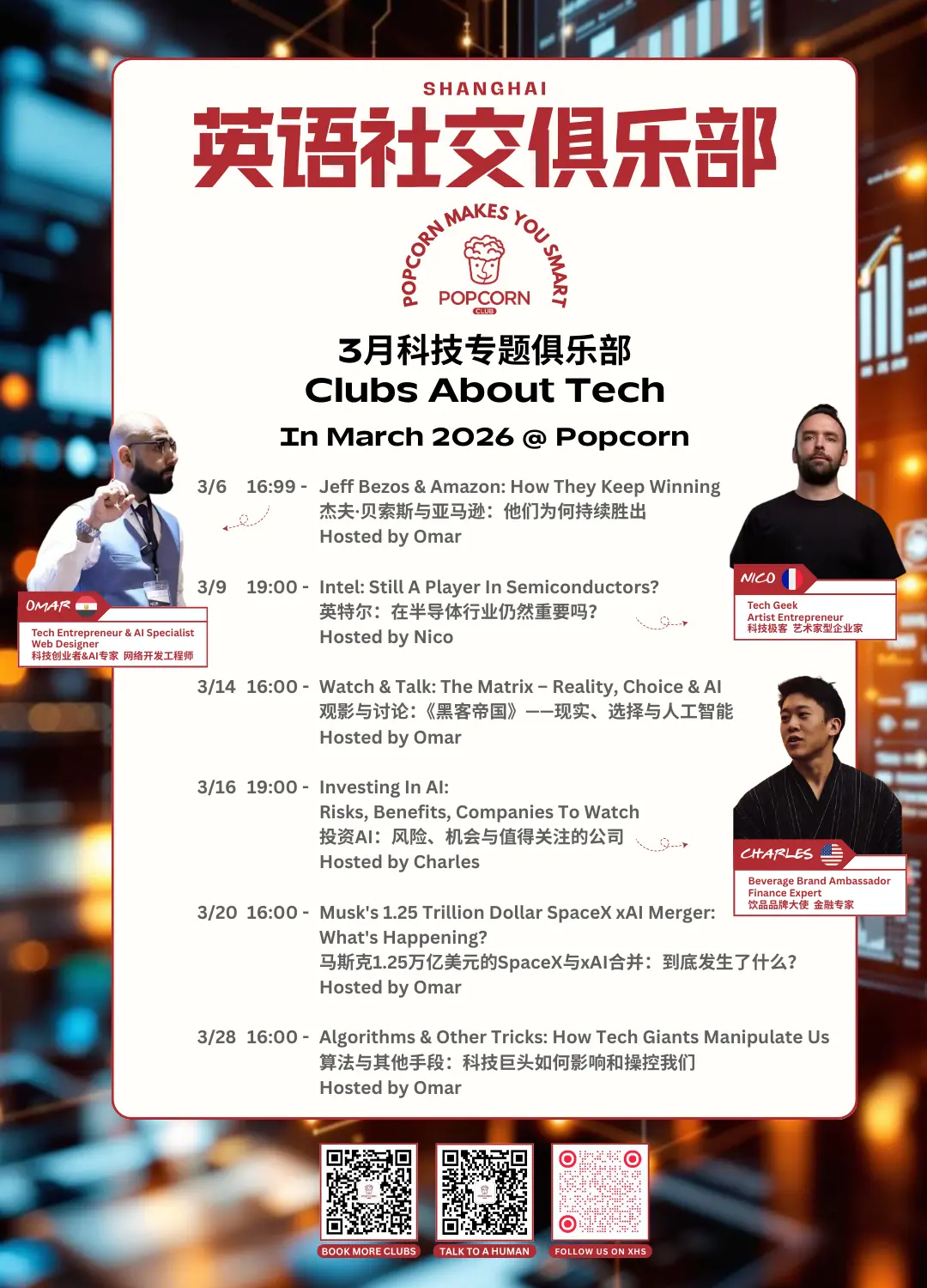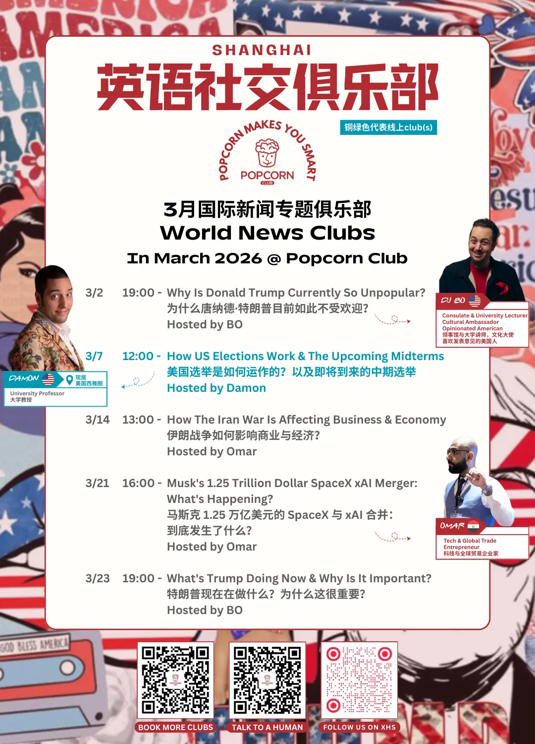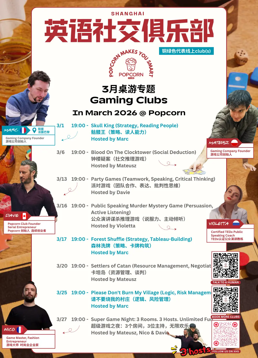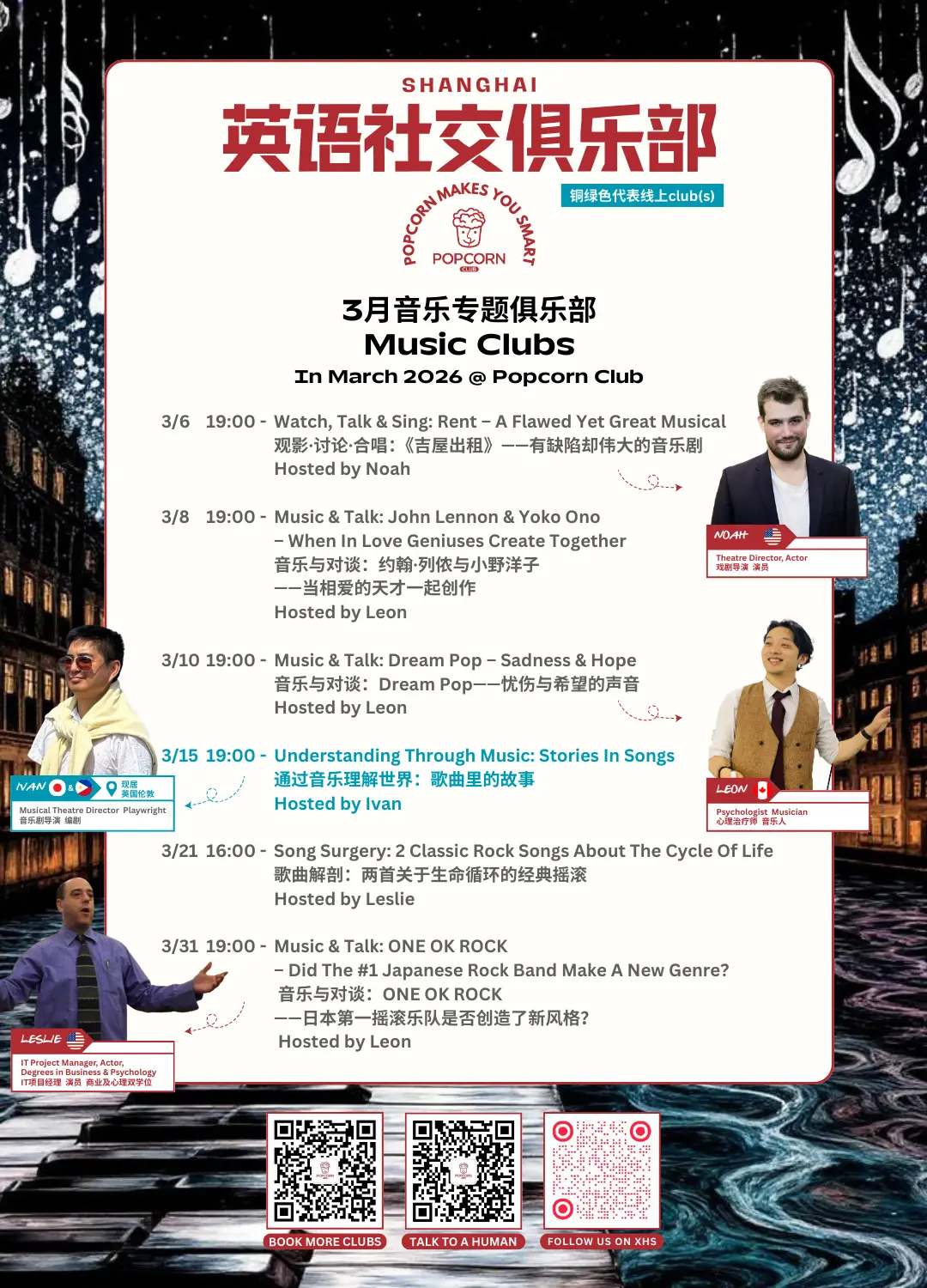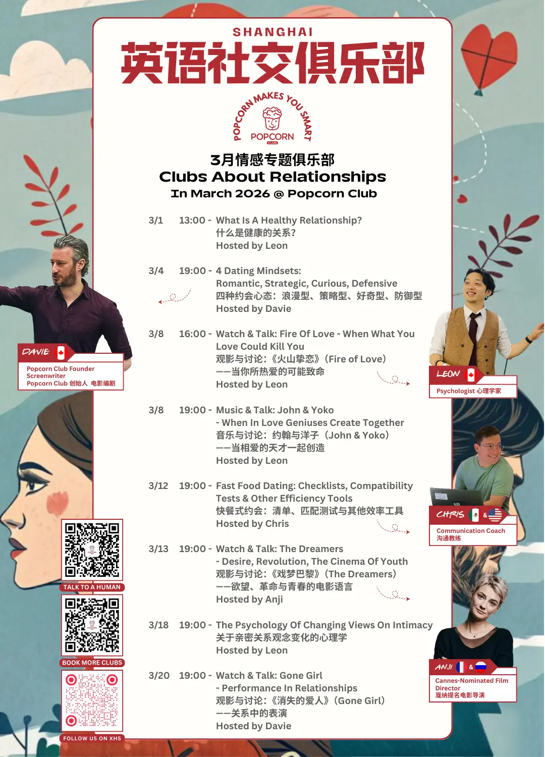 当然,3月的俱乐部远不止这些,我们只是提前给大家一点小小的剧透。还会有游戏、电影之夜、科技专题、音乐clubs、哲学、金融、商业,以及超有意思的specialty clubs,还有以及更多精彩等你来发现!
